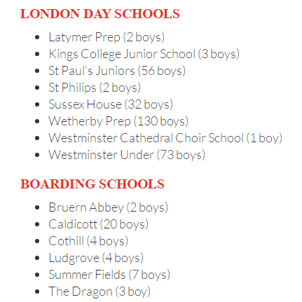 韦瑟比学龄前学校毕业生成绩突出,毕业时基本都能被理想的英国小学录取,以下是2016年的毕业生走向情况: