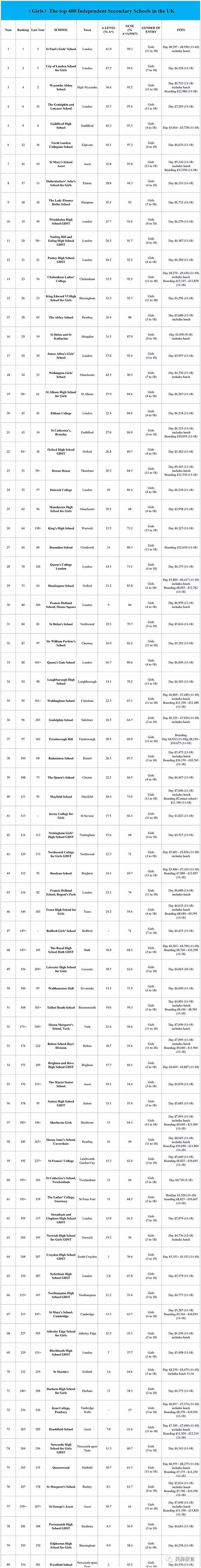 排名:《泰晤士报》女校排名第2(见下表)