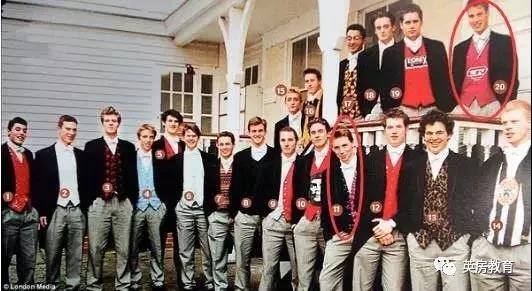 伊顿公学1995级毕业生(部分),前排为“小雀斑”,后排为威廉王子