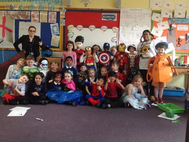 另外,配合英国的不同的传统节日或者慈善活动,学校会组织同学们不穿校服,“奇装异服”去上学-比如“超级英雄””神器帽子““故事书人物”等等。我记得“超级英雄”主题日,很多孩子穿着超人,蜘蛛侠,蝙蝠侠衣服去学校,而老师们则有的穿成护士,有的穿成消防员-他们亲身教育着孩子-这些普通人是我们生活中的超级英雄。