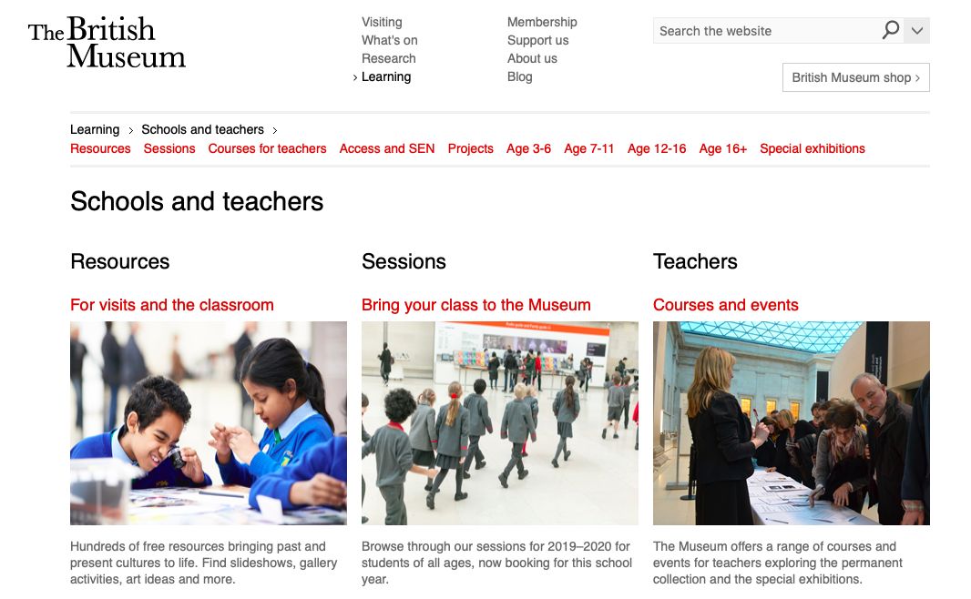 在British Museum的官网上,也专门为学校和老师们开设了专栏。