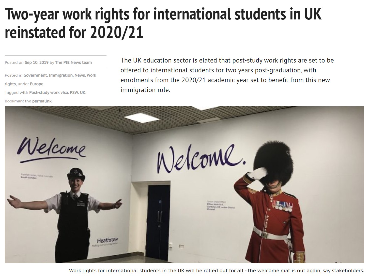 目前,拥有学士学位或硕士学位的毕业生只能在四个月内找工作。从明年开始,所有国际毕业生都有资格在英国工作两年,增加了他们在学习后找到长期工作的机会。