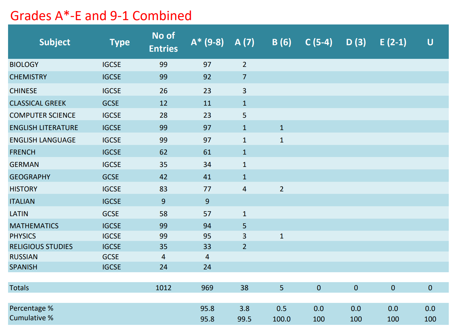 理科类:生物、化学、计算机/信息和通信技术、设计与科技(DT)、Double/Triple Award Science、数学、进阶数学、物理。