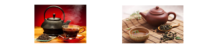 英国茶具以银锡制品及骨瓷为主,银锡茶壶闪亮,有着宫廷气息,骨瓷茶具有着明亮的光泽与艳丽的颜色,纹样以花为多,透着英式田园风味;而中国茶具以瓷器与陶器为主,洁白光亮的瓷茶具使得饮茶更显高雅,而朴实无华的陶器则渲染着饮茶超然世外的氛围。